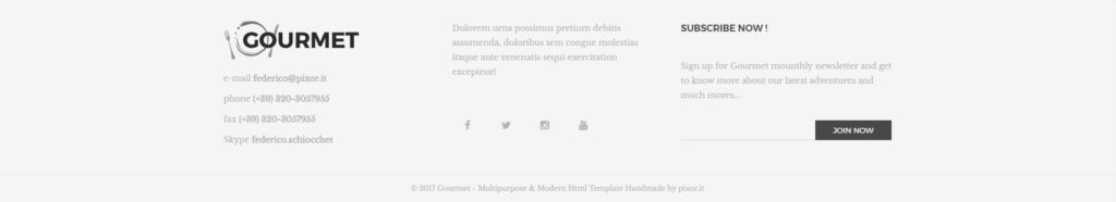 © 2017 Gourmet - info@restaurant.com - +02 123458992 - Wall Street Avenue 502, New York - Restaurant Template Handmade by pixor.it